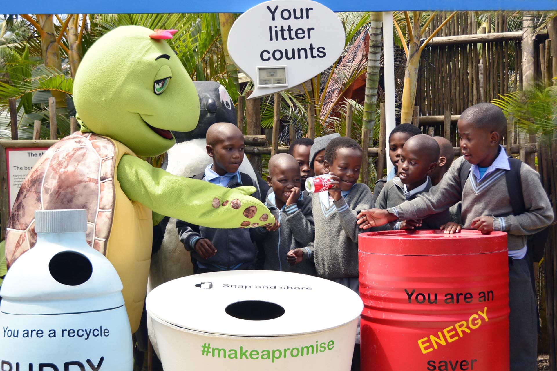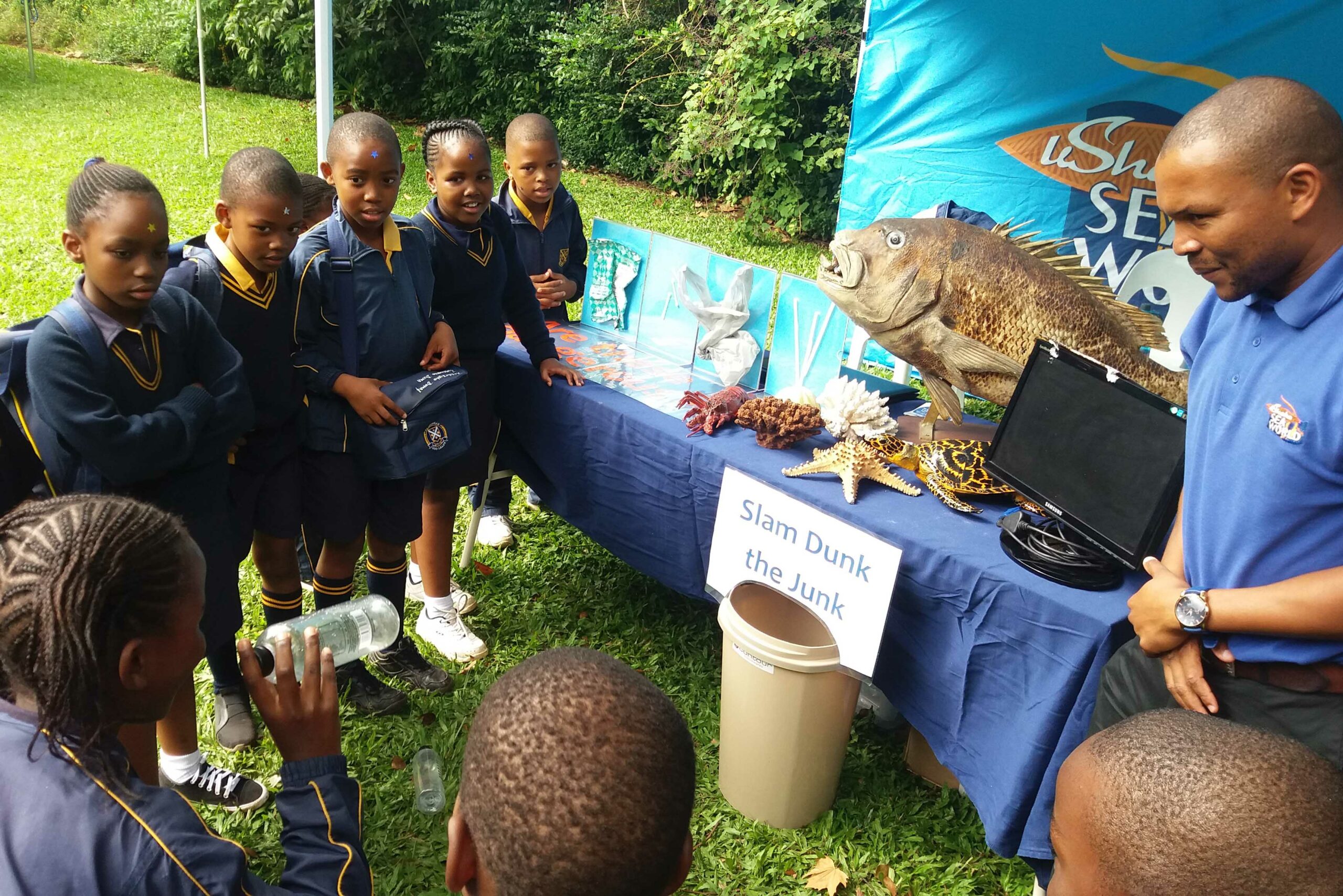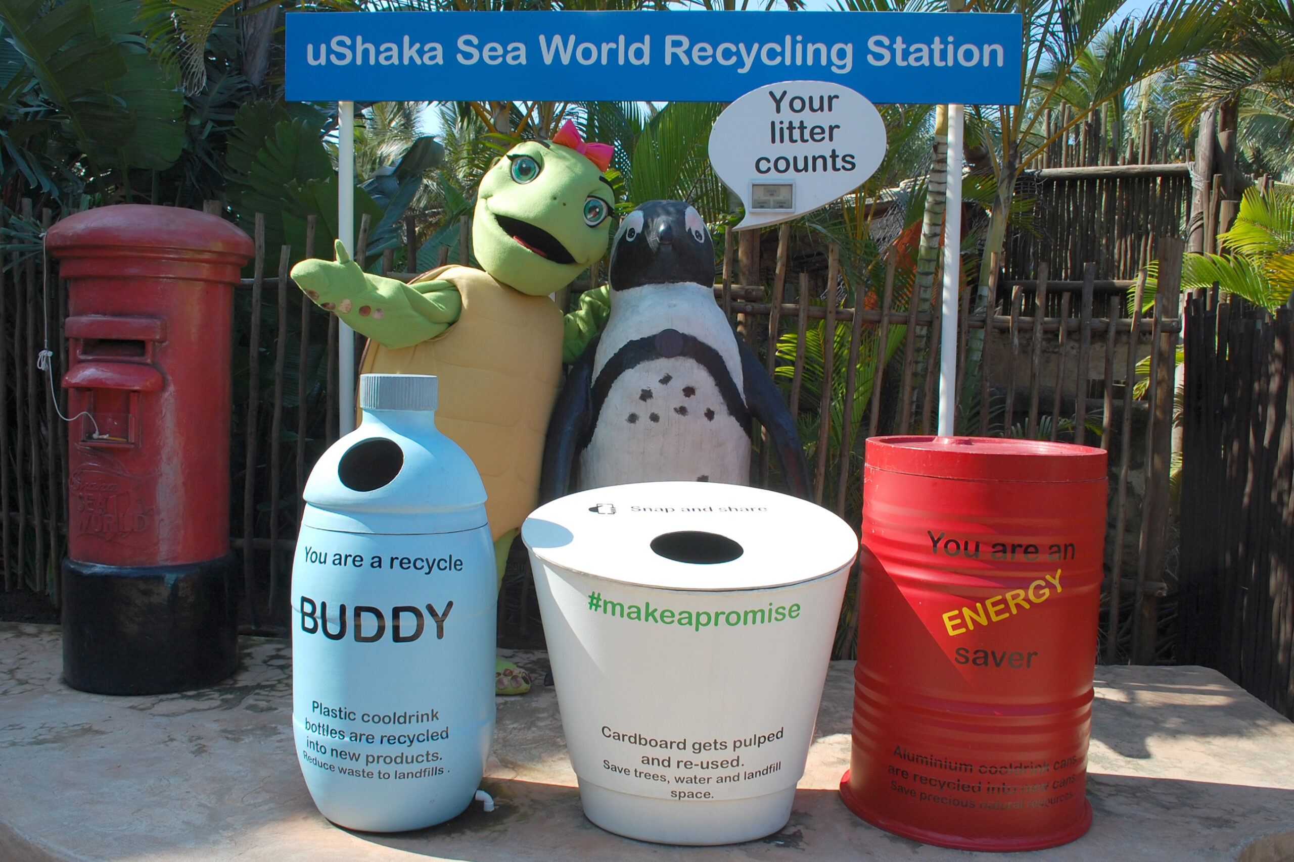 Thandi’s primary role is to inspire children visiting uShaka Sea World to place their litter in bins, using the catchy slogan “Slam Dunk The Junk”. Litter in a bin can be disposed of through the correct channels.