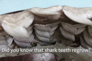 Did you know that shark teeth regrow? Sharks lose thousands of teeth over their lifetime, but they can also regenerate their teeth. This happens over a period of months, and the shark is capable of replacing lost teeth as many as 50 times over during the course of their life.