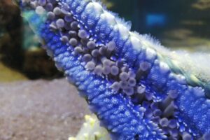 Have you ever wondered how a sea star feeds? Well it pushes its stomach out of its body and into its prey. It then secrets enzymes that digest the prey’s soft body tissues which can then be absorbed into the sea stars stomach. After devouring the liquified victim., the stomach is then pulled back into the sea stars body. Many sea stars are carnivorous and prey on molluscs including clams, mussels and oysters.