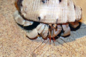 A Hermit crab is an animal that does not move around without their home. There are over 800 species of hermit crab. They have two sets of antennae, as well as jointed limbs, claws, a strong exoskeleton, and eyes on stalks as do most crabs. The hermit crab is unique among crabs because its abdomen is not protected by a hard exoskeleton therefore this crab lives in an empty snail shell to protect his abdomen. Another interesting fact about the Hermit crab is that they need their gills to stay moist in order to breathe, so they have the ability to store water inside their shell in order to breathe when out of the water.