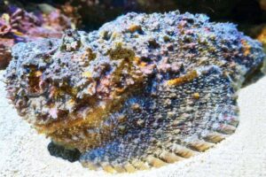 Is it a stone or a fish? Stonefish are the most venomous fish and are masters of camouflage. They are found on coral and rocky reefs, mud flats and in estuaries. Their powerful large mouths enable them to swallow their prey whole and at great speed. The neurotoxin of these fishes is the deadliest of all fish venoms. When stepped on, they can inject venom through grooves in the spines on their dorsal fins. Their venom is extremely painful and can be fatal to humans if not treated.