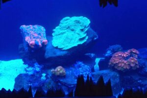 We all know the dangers of too much sun exposure and the need for sunscreen, but did you know that corals face a similar problem? As most corals are found in shallow water, they are exposed to UV radiation. Too much light can damage the zooxanthelle, a symbiotic algae that lives inside the coral. Some corals cope with this through fluorescence. As they fluoresce, they produce a protein, and this protein pigment forms a shield around the zooxanthelle, protecting them from harmful UV rays.