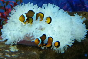 Sea anemones are well known for their link with clownfish, but these fascinating creatures are more than simply a home for fish. They come in many different forms and sizes, each with their own set of characteristics. Anemones lack a hard skeleton and instead are supported by water pressure. They have a cylindrical body with a collection of tentacles surrounding their mouths which are situated in the middle of their bodies. Sea anemone’s stinging tentacles are used to sting prey as well as a defence mechanism. Their tentacles resemble those of their close relative the jellyfish.
