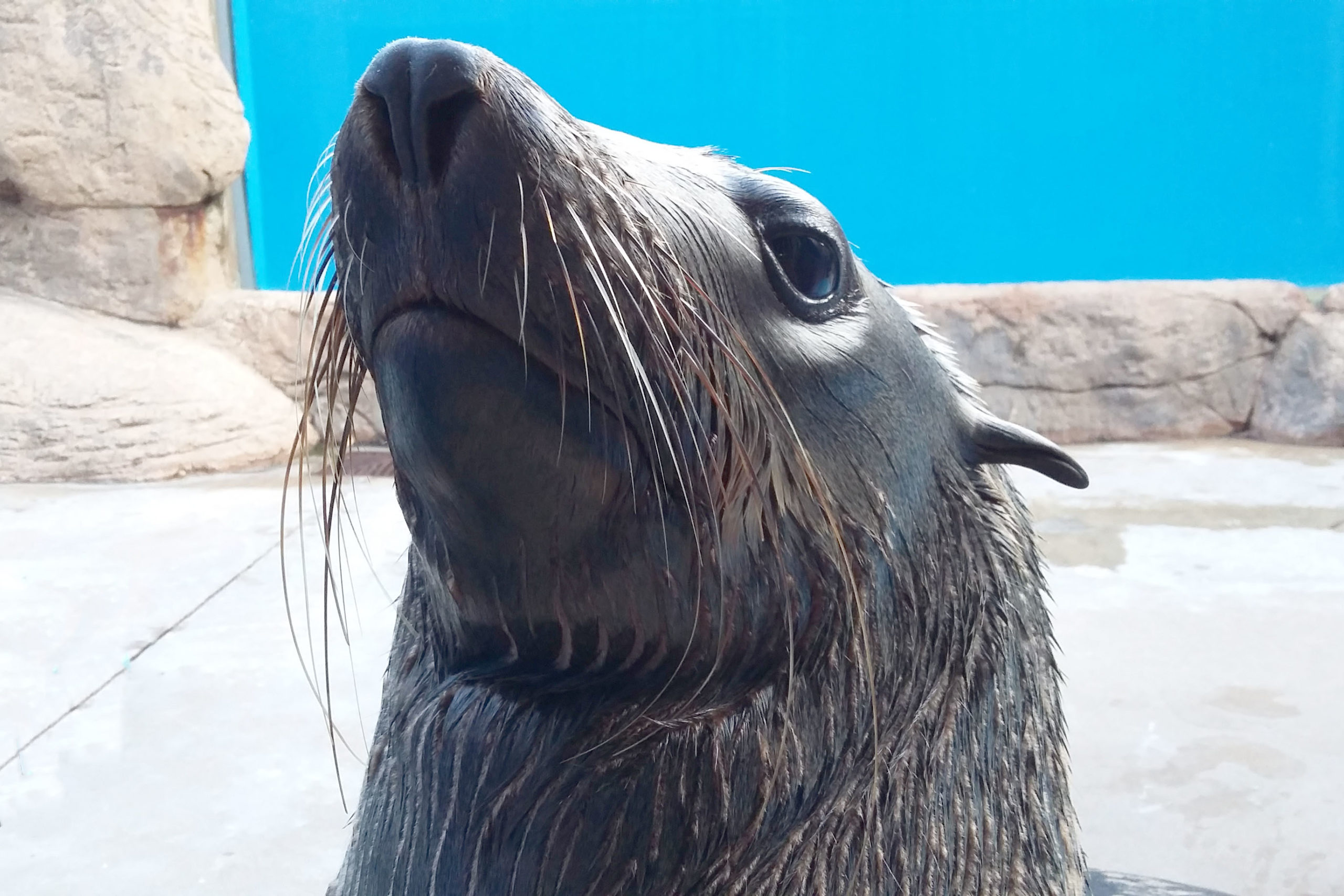 Hobi was named after a beach in Port Elizabeth where he was rescued as an eight-month-old pup suffering with a tooth abscess. Hobie has a gentle yet adventurous nature and enjoys playing with a water hose which he tucks his flipper to aim the water into his mouth.
